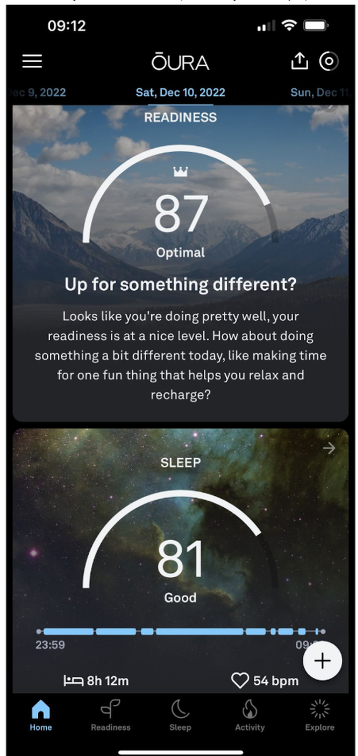 Recovery and sleep scores form the Oura app.