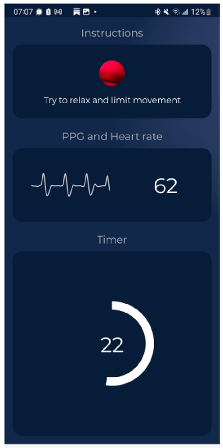Measurement in progress with the HRV4Training app.