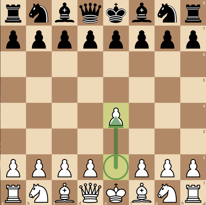 The King's Pawn Game is a classic opening system in chess. It starts with White playing 1.e4, that is, advancing the pawn in front of the king two squares forward.Look it: