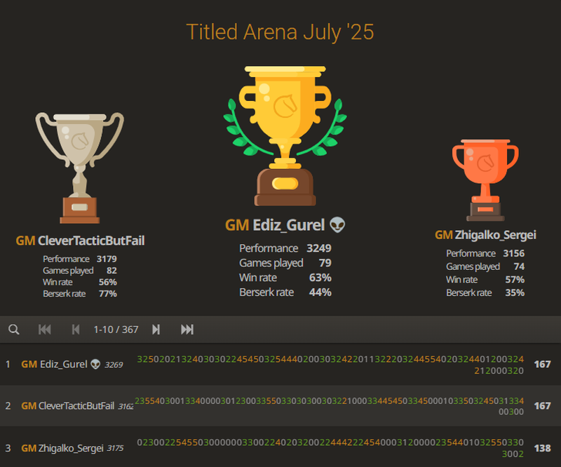 Nonetheless Ediz dazzled fans across lichess (the Turkish lichess mods were certainly busy) at one juncture capturing 27 points with an impressive 7 game win streak.