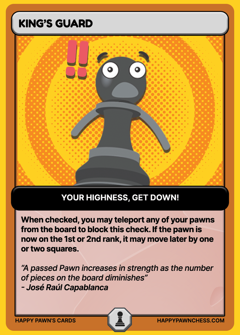 As kids, we all liked these little toys or poster included in magazines. So, we created some stickers with chess advice as well as chess cards giving some extra power during fun chess variants games.