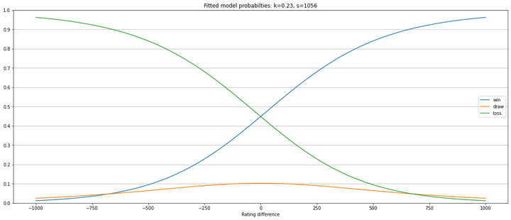 The Elo model for win/draw/loss distribution is: