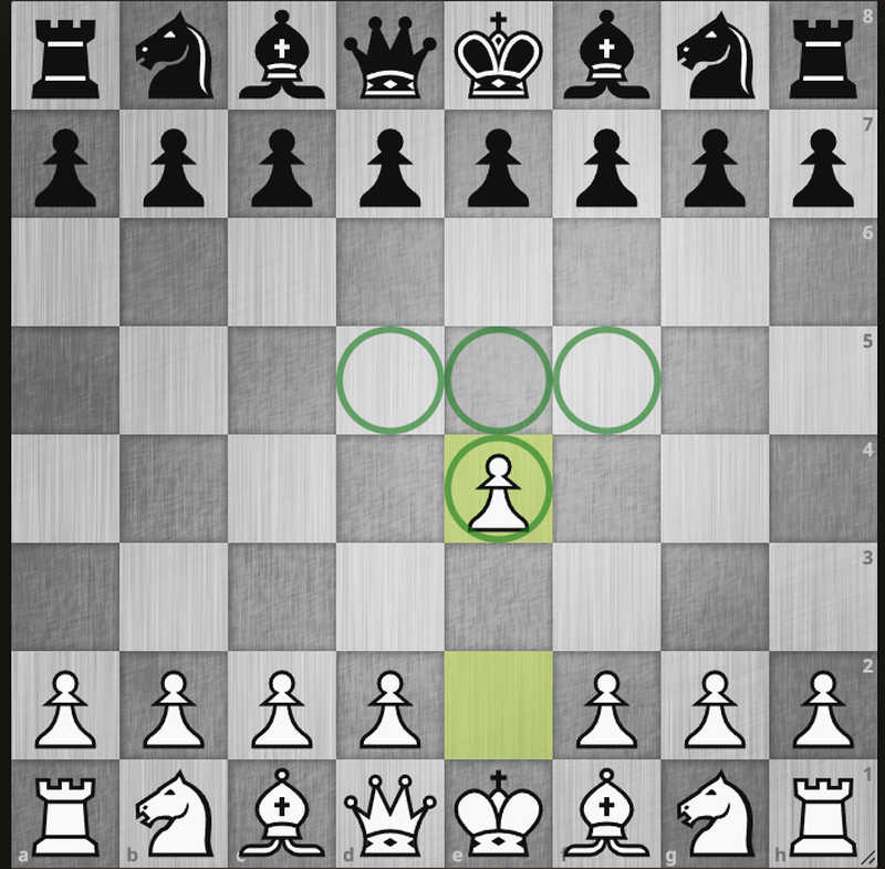 也就是说实际上前方三格,像电子轨道的概率云一样,都是兵可以占领的格子。这很有趣,也就是说实际上根据棋局走向的不同,这三个格子在概率坍缩之前,实际上没法确定会是哪个格子在之后被这个兵来占领。