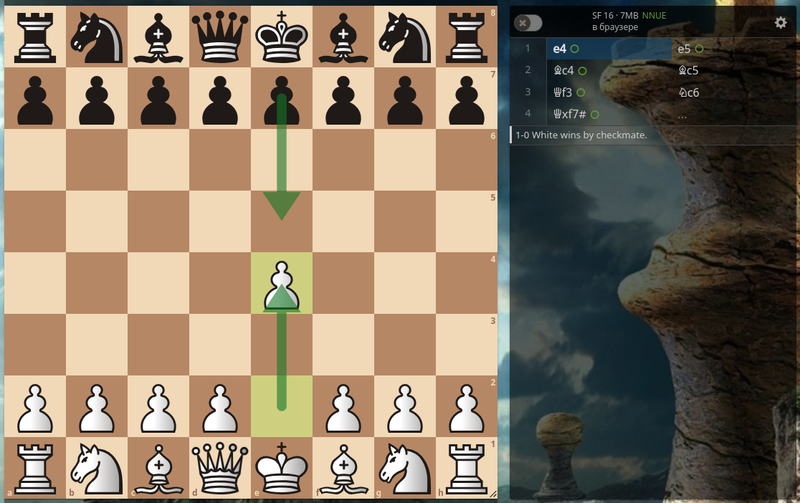 Первым ходом мы атакуем центр для вывода ферзя и слона.