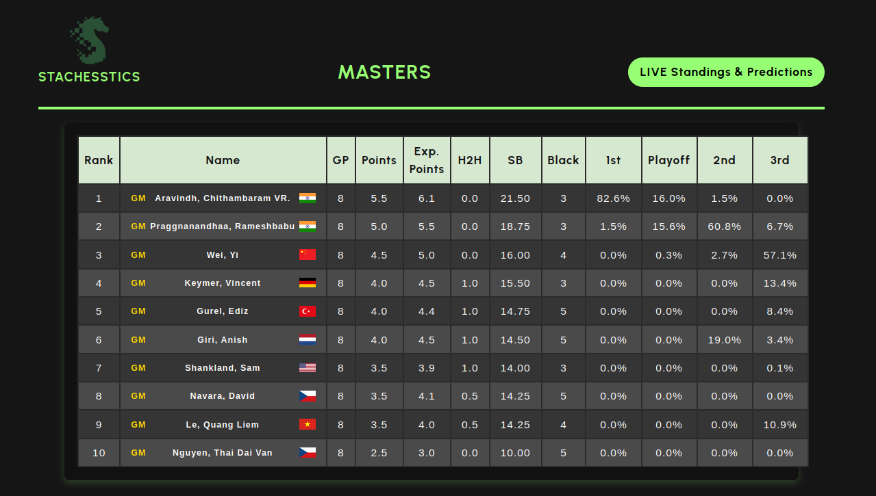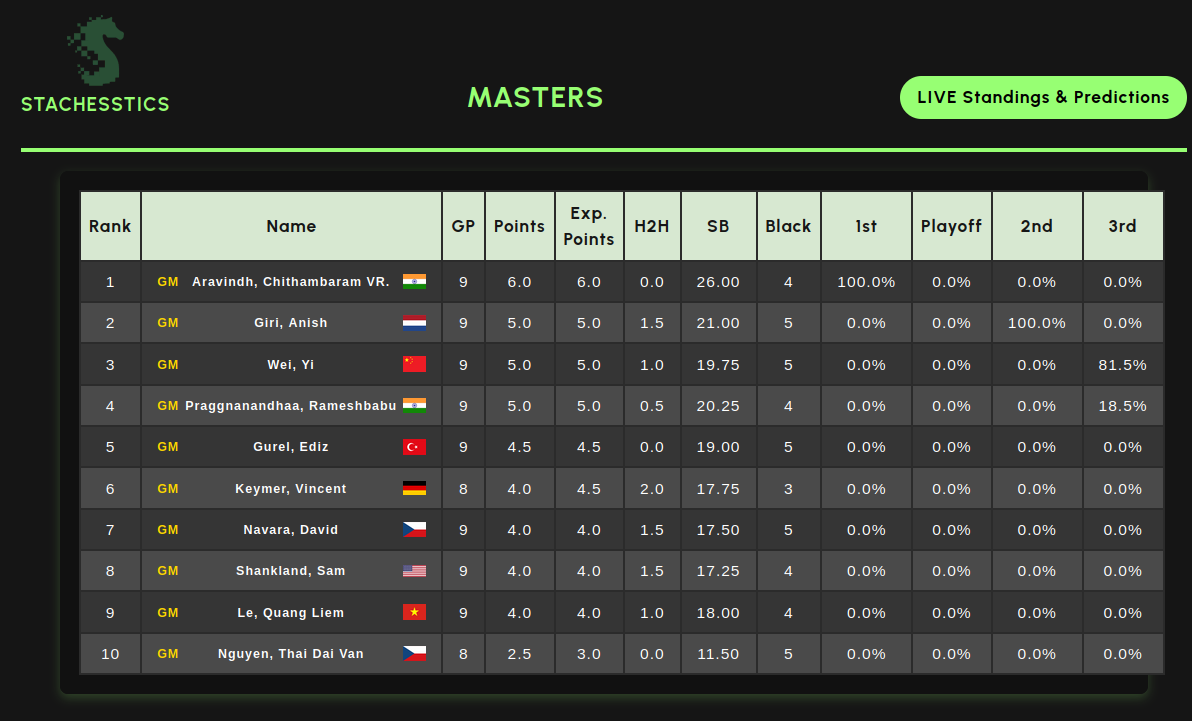 StaChesstics' Live Standings & Predictions during the final round