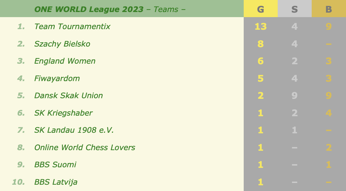 This week's medals and overall standingsNext team battles: