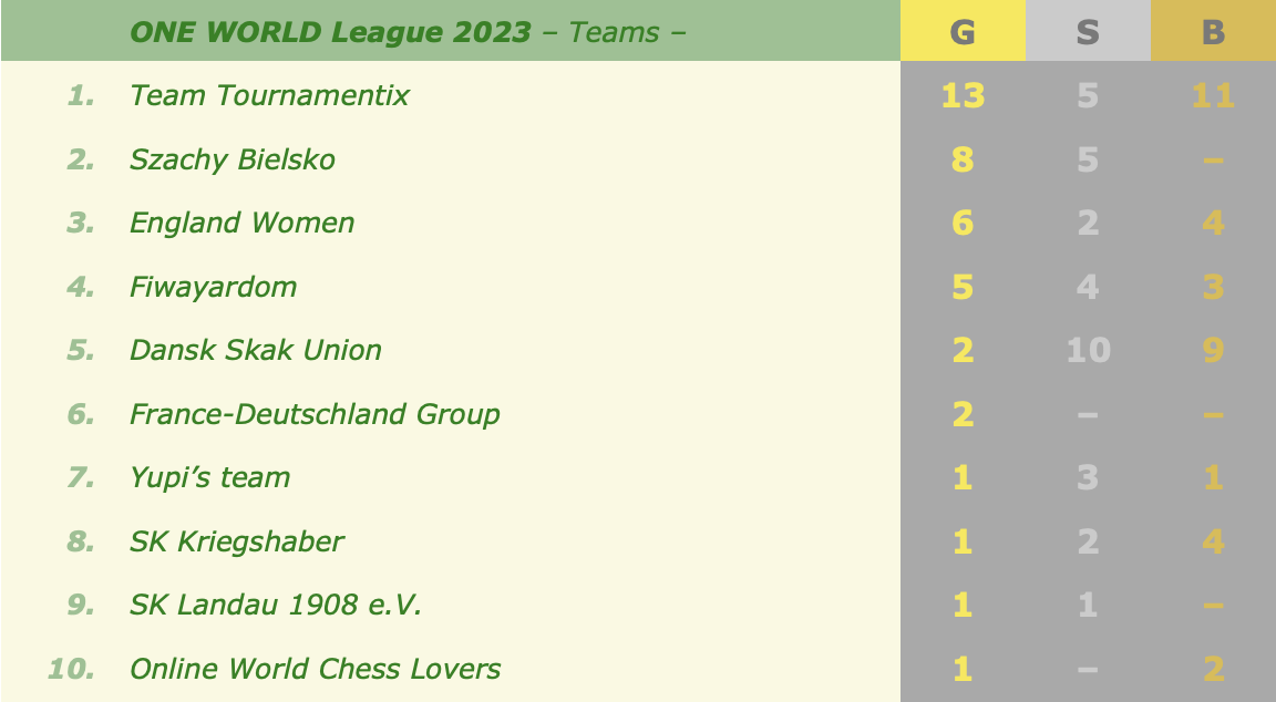This week's medals and overall standingsNext team battles: