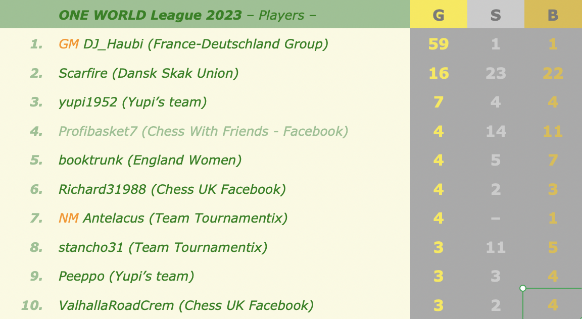 Next ONE WORLD League events: