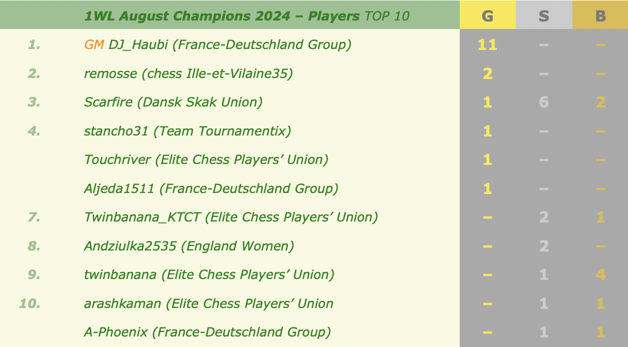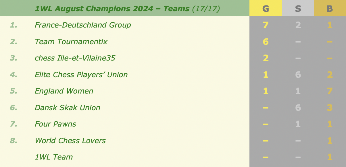 ONE WORLD League August Champions 2024