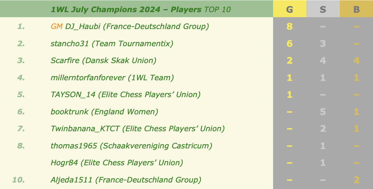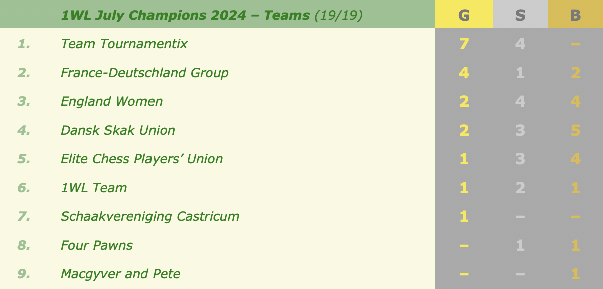 ONE WORLD League July Champions 2024