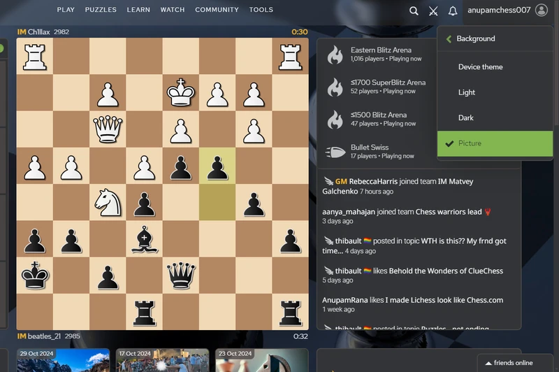 You saw me in my previous blog to convert lichess's simplistic design into chess.com ish feel... well I MADE IT TO GO EVEN BEYOND THAN THAT!!Please check my previous blog to know how to install this setup...