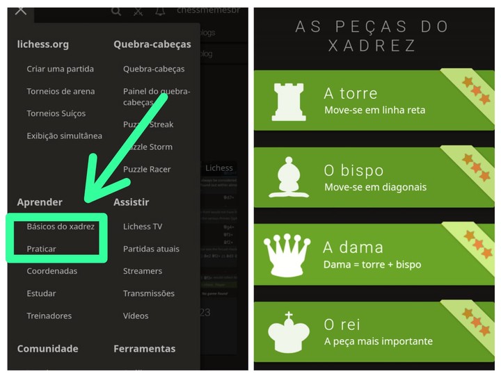Primeiro te recomendo fazer os exercícios do lichess tente completar todos