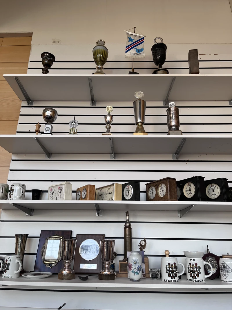 Even before we arrived, we could see a few chess trophies (and seagulls) from the shop window outside, which Reykjavík and Iceland had won in team and national competitions.