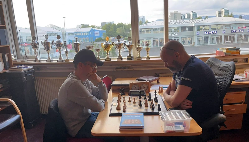 President of the Reykjavík Chess Club (on the right in the picture against your reporter at the blitz): FM Ingvar Thor Johannesson