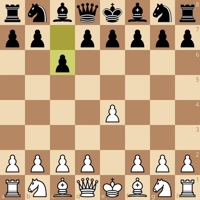 The Caro-Kann starts with 1.e4 c6. Black prepares to play 2...d5, with the c pawn ready to take back should White take it.