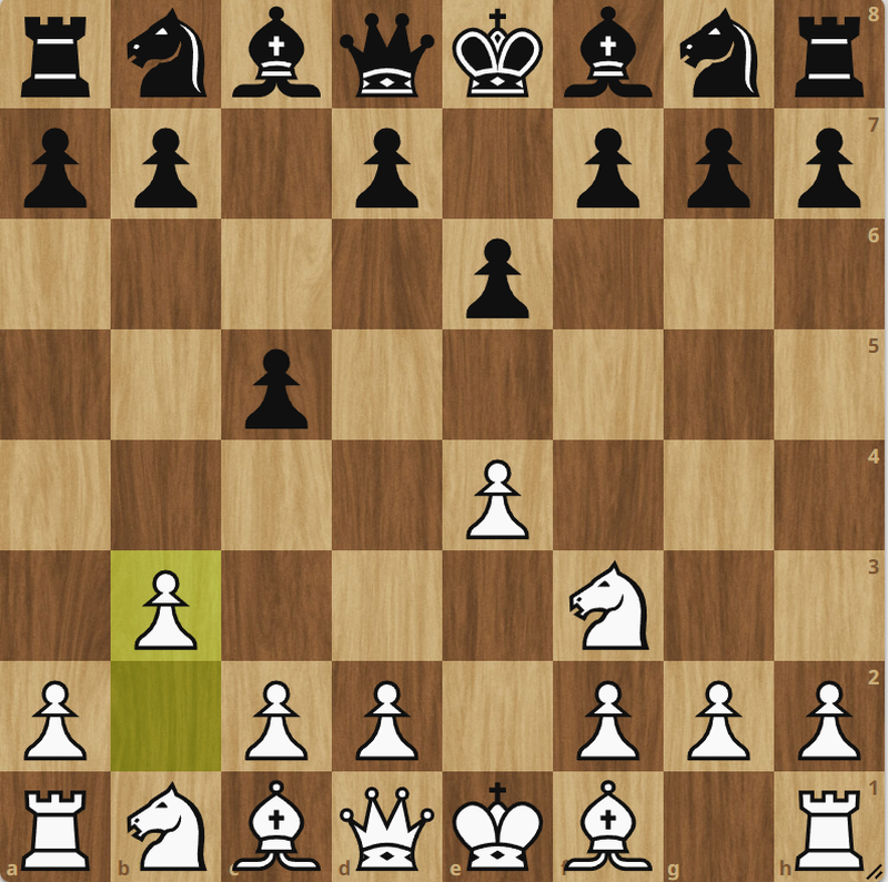 In the Alapin variation white plays 2.c3. Alapin Variation is also played on the top level and is still played by many grandmasters as their main weapon. Black has 2 main choices against Alapin. The first is 2...Nf6 and 2...d5.
