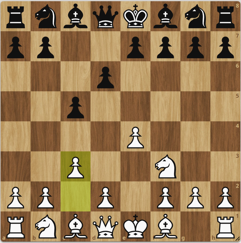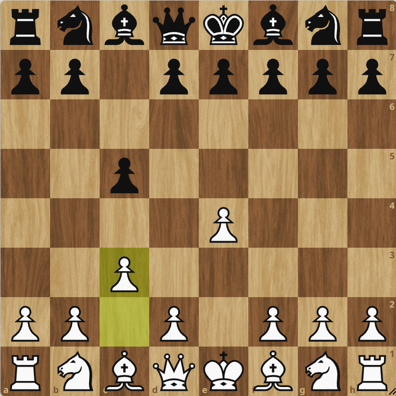 Delayed Alapin is a version of Alapin Variation but white delays it by playing 2nd move Nf3 and then 3rd move c3. The main reason to play like this is to avoid black’s d5 move.