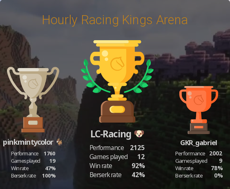 Maybe one of these days I can win a Weekly Racing Kings Arena and I can get up to Top 100 Racing Kings players, but in order to do that I need to atleast gain 200+ elo, which honestly should'nt take too terribly long.