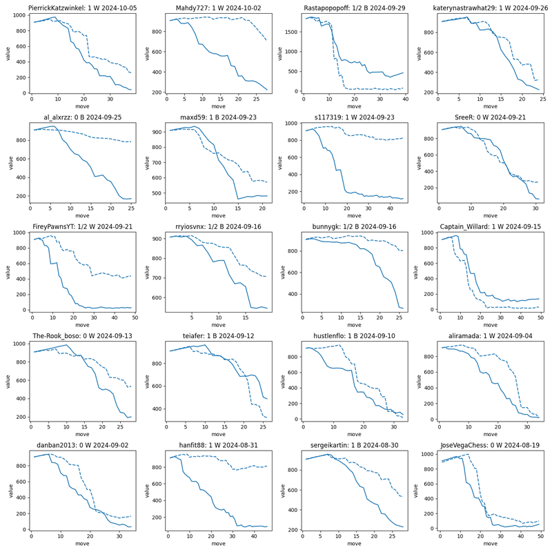 And finally let’s look at the averaged line over all rapid games from 2024. Solid — my time, dashed — opponent’s time, as usual:
