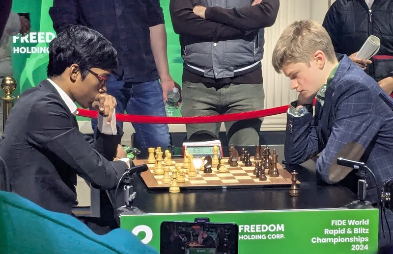 Volodar Murzin's defeat of Praggnanandhaa R put him a half point ahead of the second place finisher, Alexander Grischuk, going into the final round. The 18 year old Murzin went on to win the tournament with an undefeated record. Congrats to the new World Champion! It was a well fought and well deserved victory.